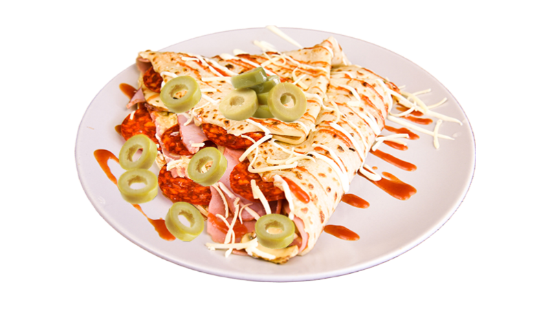 Šunka, pečenica, kulen, kačkavalj, pavlaka, šampinjoni, maslina